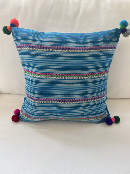 Karen Hill Tribe Fuchsia cushion cover with pom pom