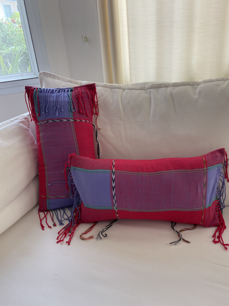 Stunning handwoven material sourced and designed exclusively from Karen villages in Northern Thailand offering vibrant colors with intricate unique patterns, making it a striking addition to any room.  Its careful selection ensures quality and authenticity, adding a touch of cultural richness to your space.