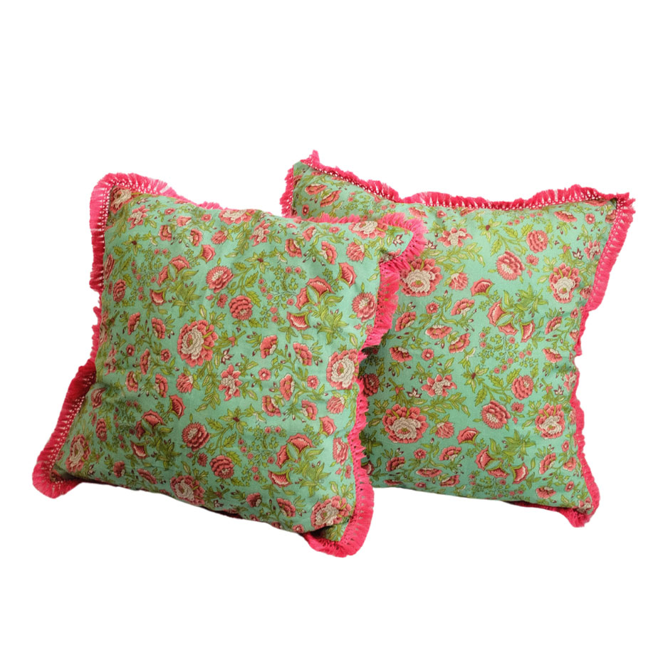 Indian cotton hand block print throw cushion covers – set of 2