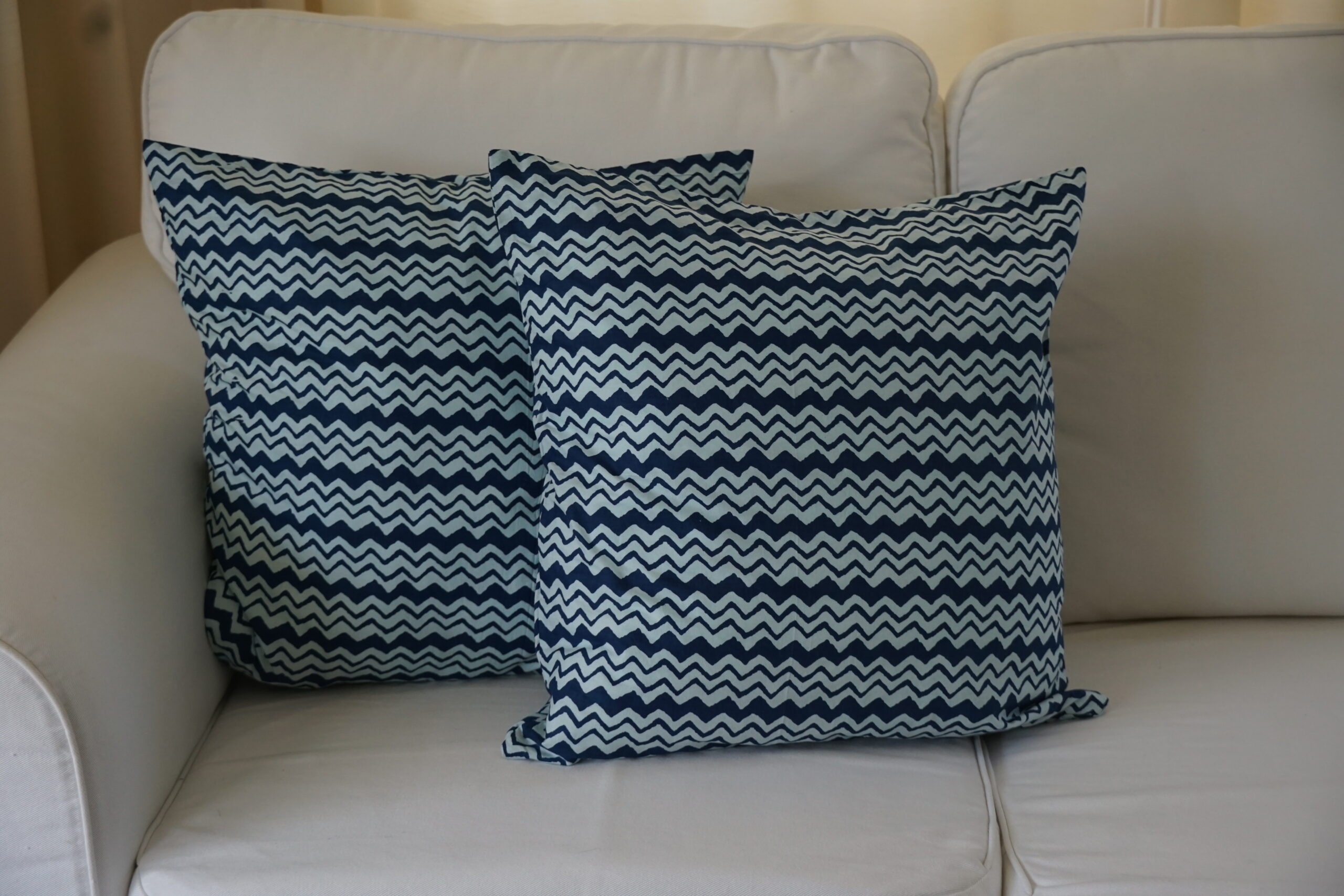 Indian cotton hand block print throw cushion cover, available with or without frills