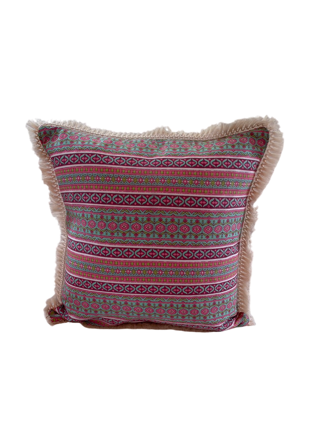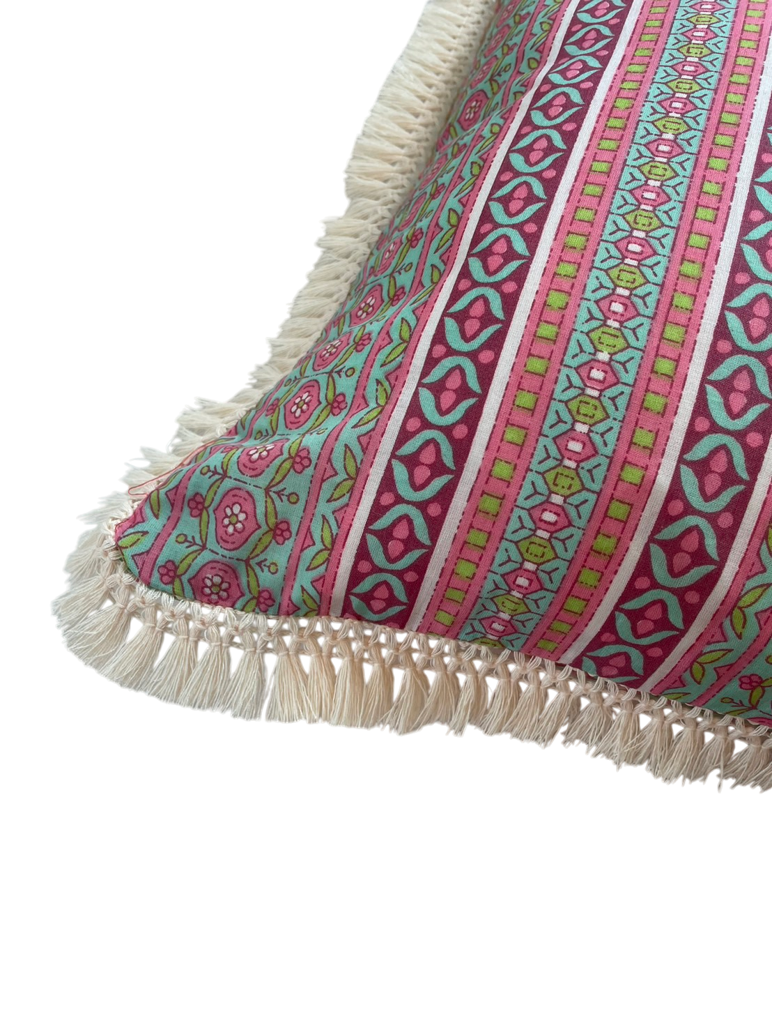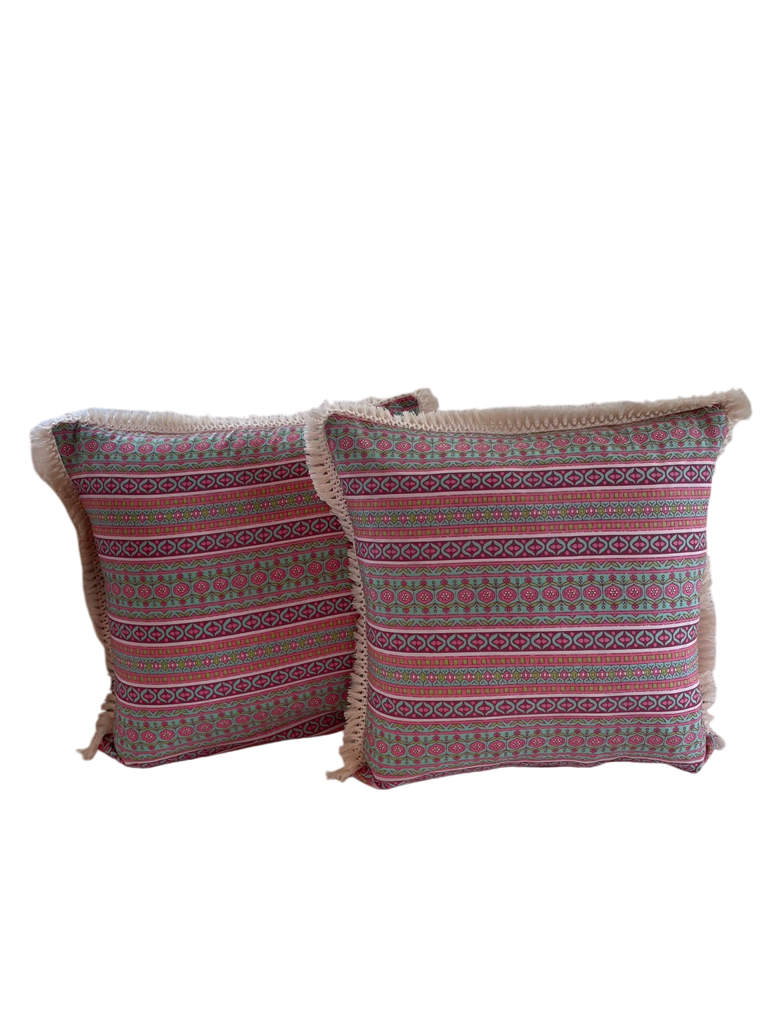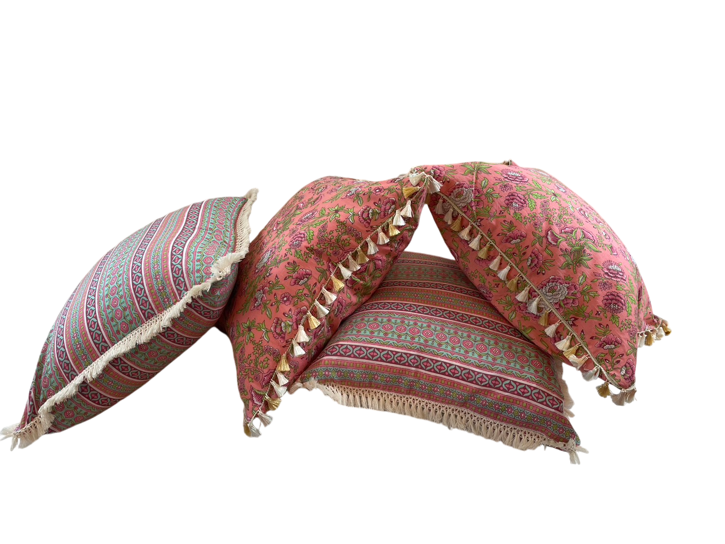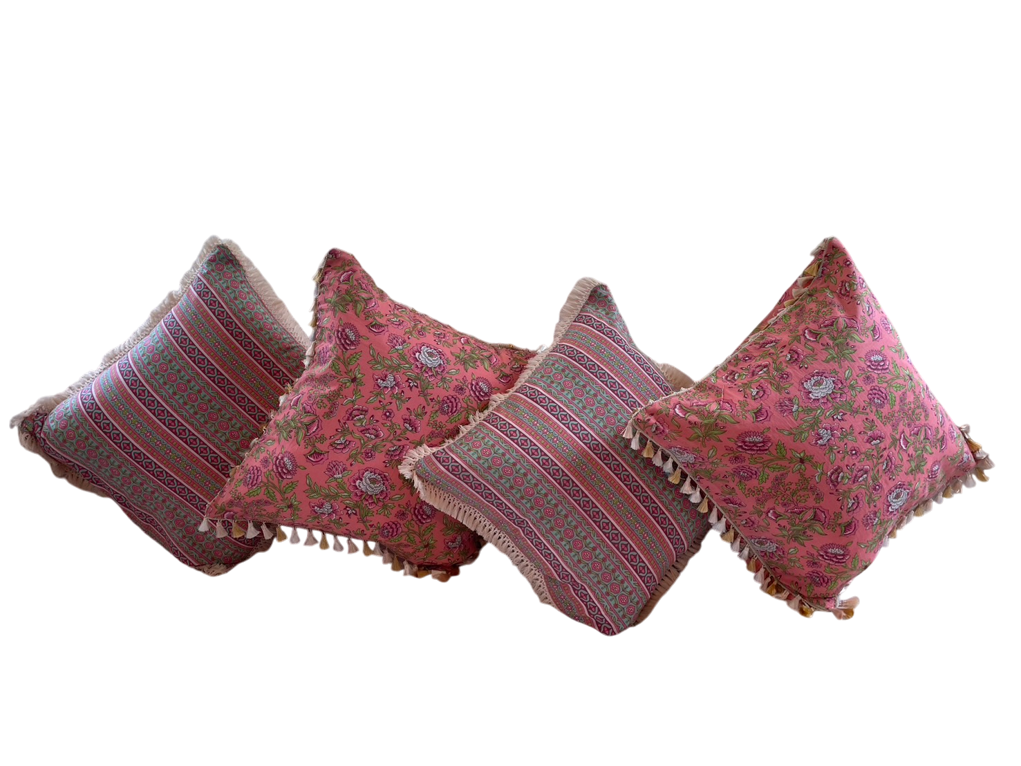 Indian hand block print cotton throw cushion covers available with or without trimmings.
