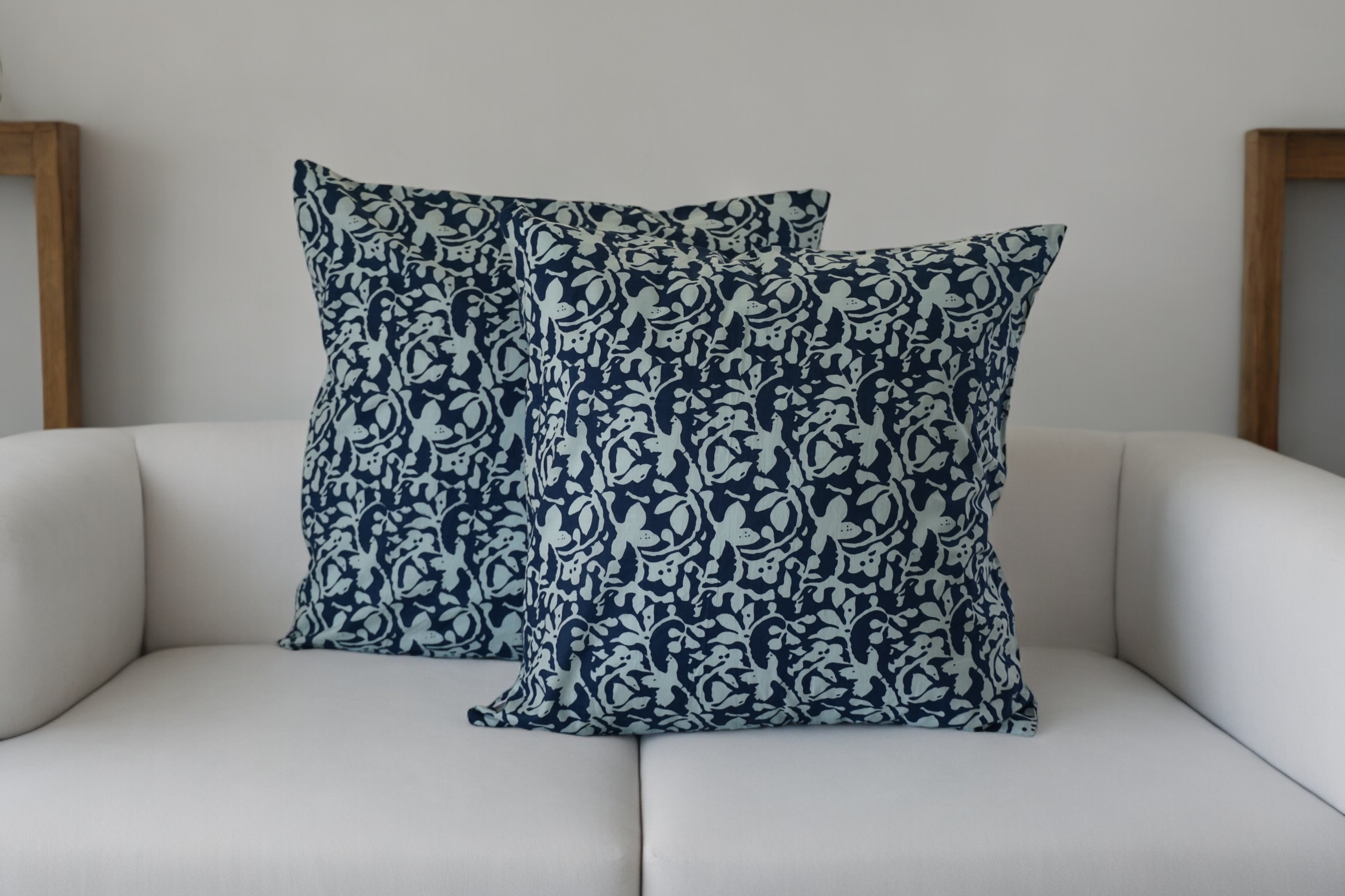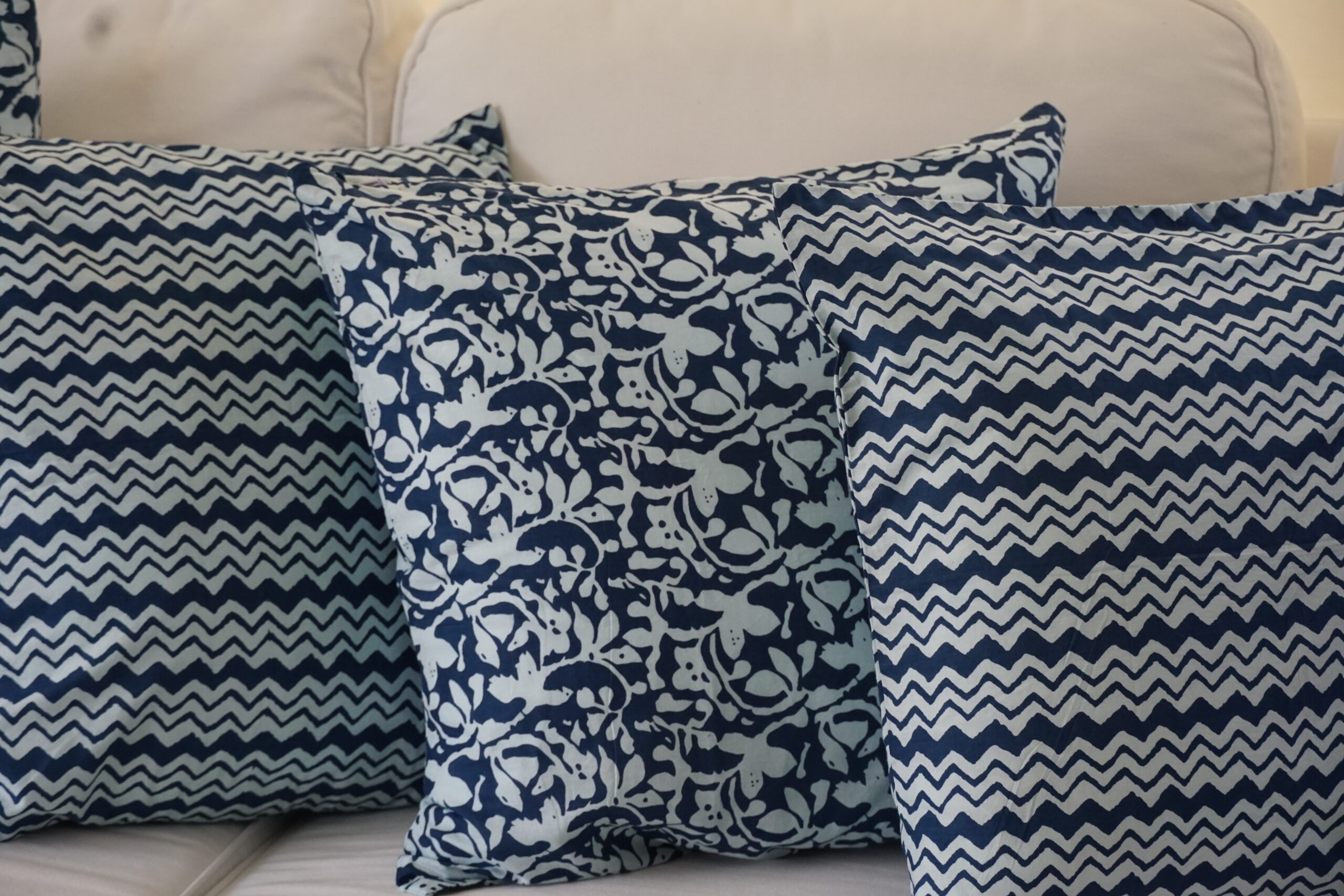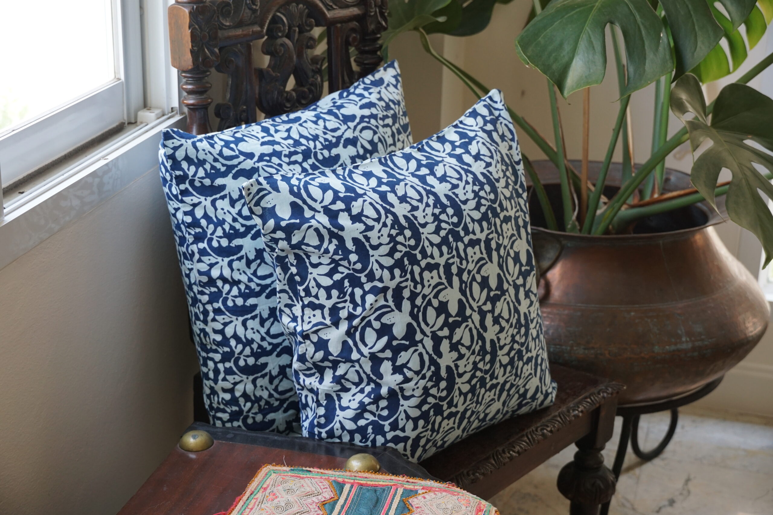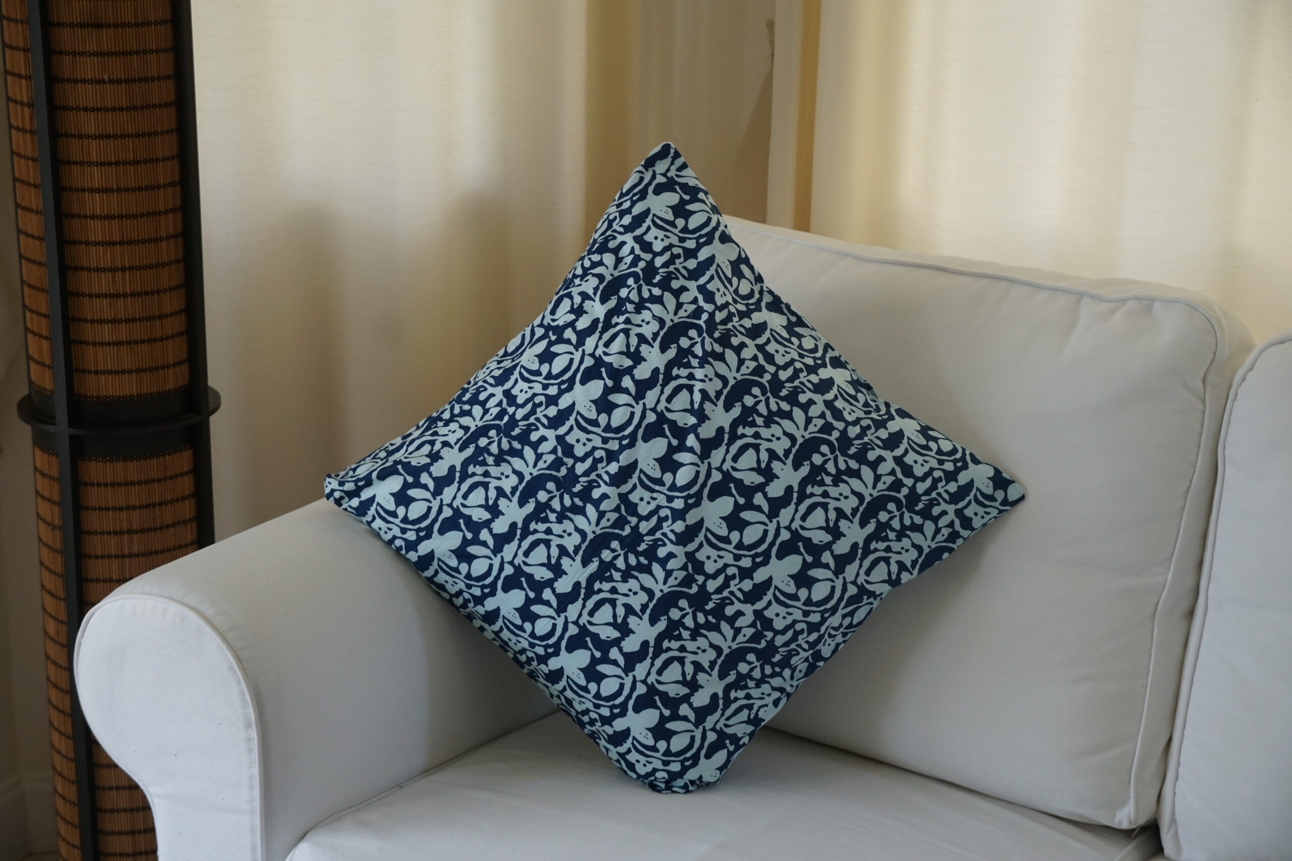 Indian cotton hand block print throw cushion cover, available with or without frills