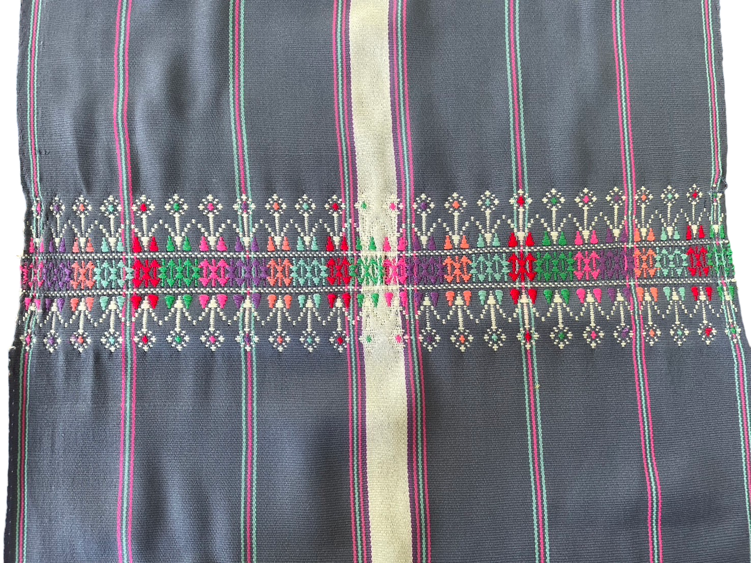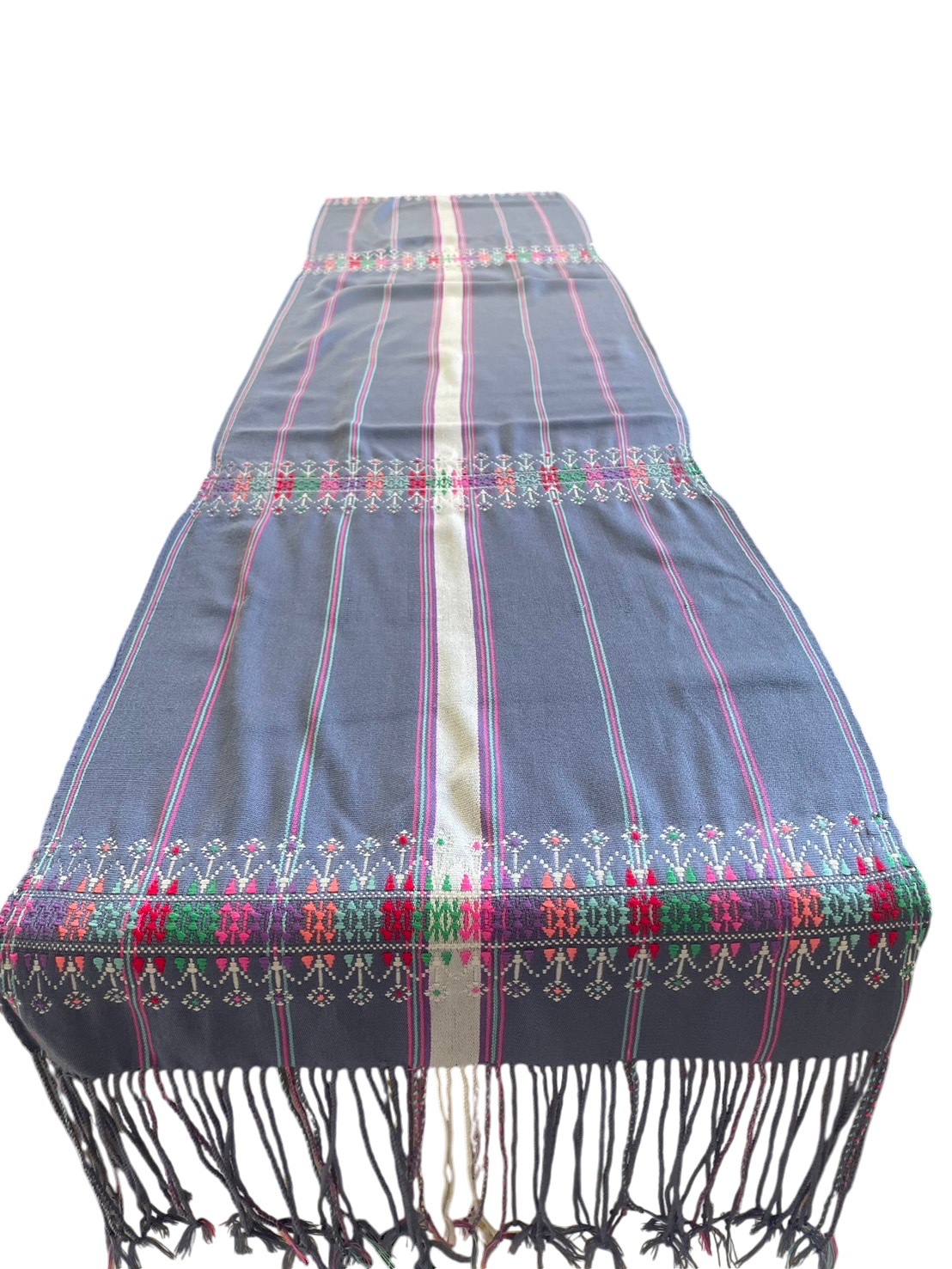 Gorgeous Karen Hill Tribe hand woven table runner with frills.  Hand wash and hang dry only.