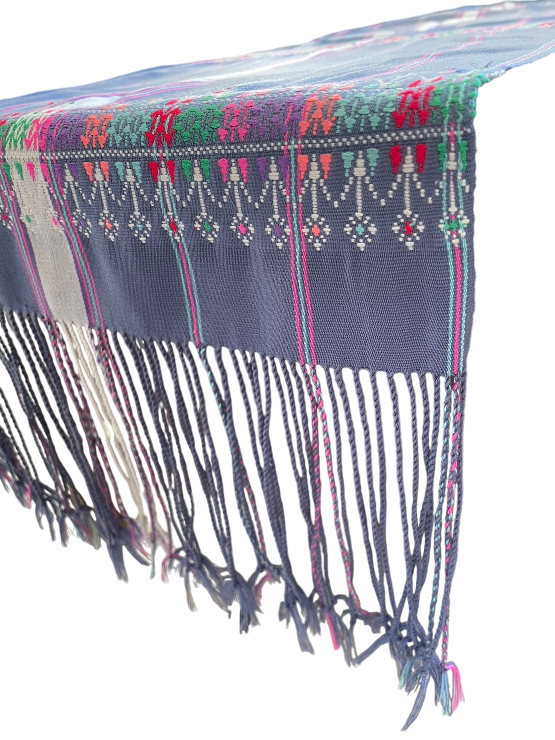 Karen Hill Tribe Handwoven Lilac Table Runner with Frills