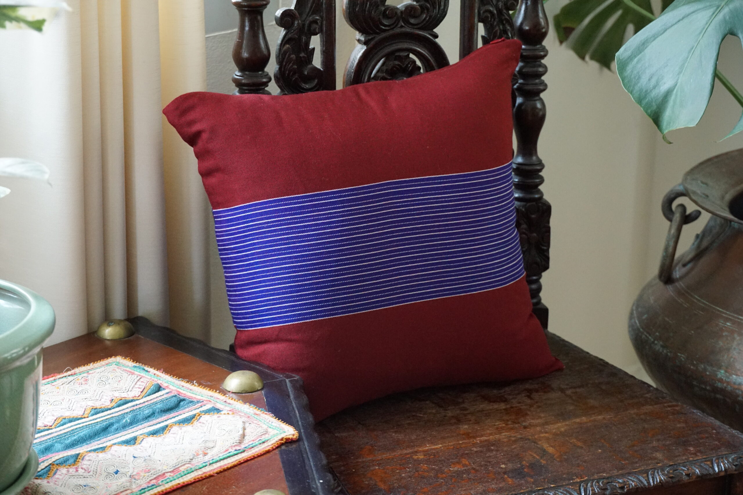 The handwoven material sourced from Karen villages in Northern Thailand offers vibrant colors, intricate patterns, making it a striking addition to any room. Its careful selection ensures quality and authenticity, adding a touch of cultural richness to your space.