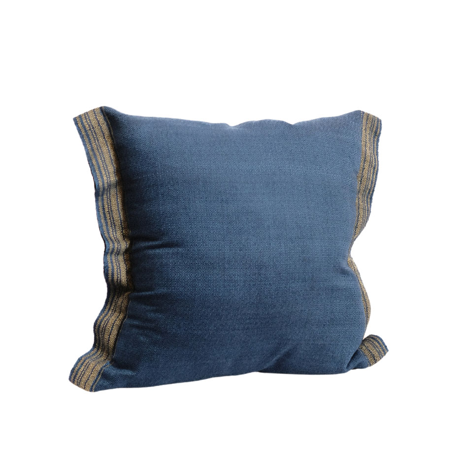 The handspun material from families in Northeastern Thailand undergoes traditional dyeing process with natural indigo before it is handwoven in the family’s loom. The fabric may have uneven colors in some places but its classic indigo hues offers a calming and cultural elegance to your room.